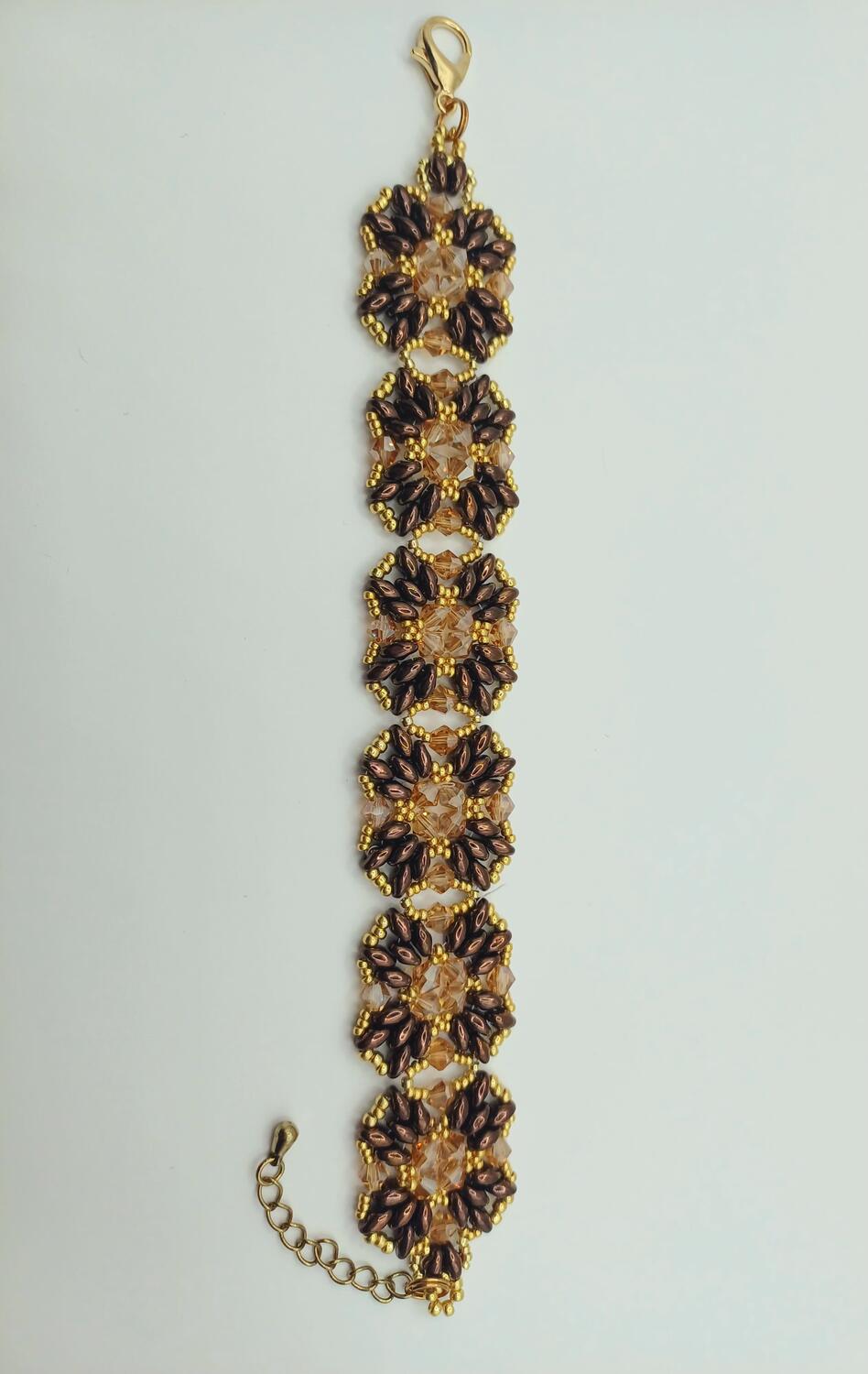 Bracciale Dalia è un intreccio prezioso che unisce la geometria delle perline alla lucentezza dei cristalli Swarovski. Un gioiello leggero, raffinato, interamente tessuto a mano, è anche molto versatile: perfetto sia su un outfit casual chic che per una cerimonia