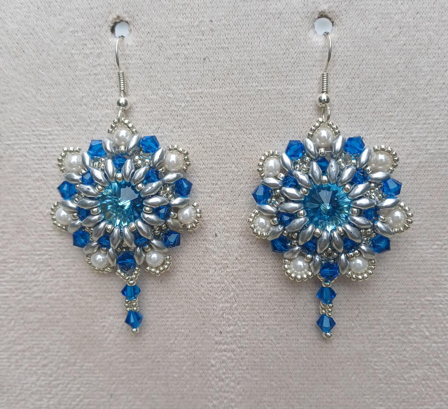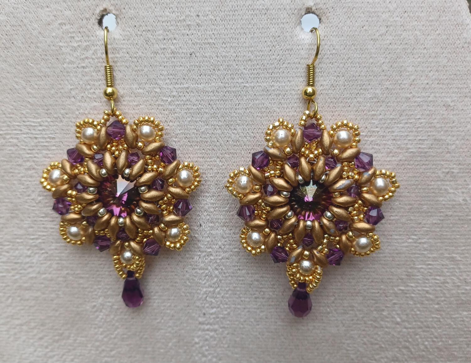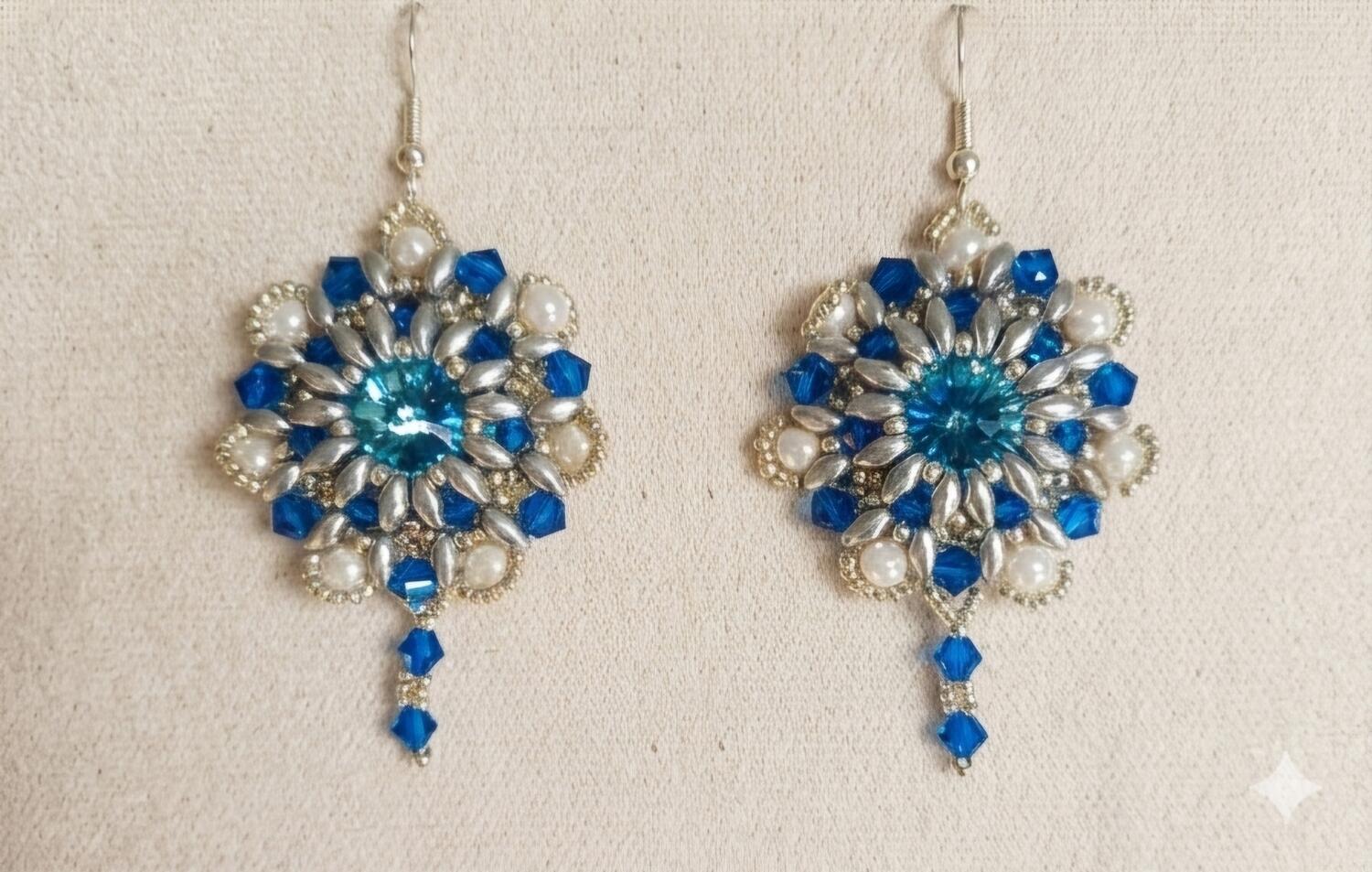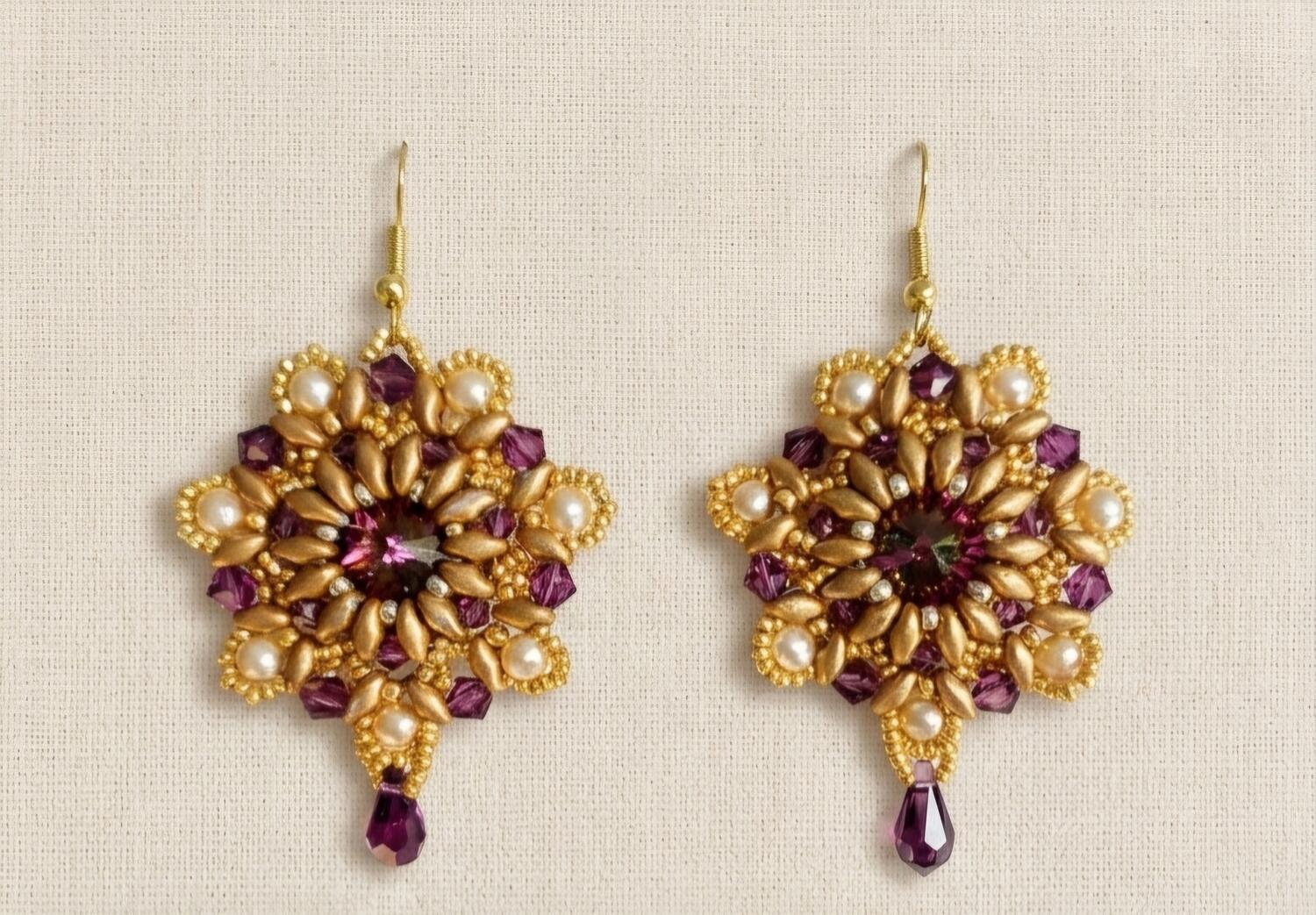 Orecchini dal sapore rétro fatti a mano con la tecnica della tessitura di perline.