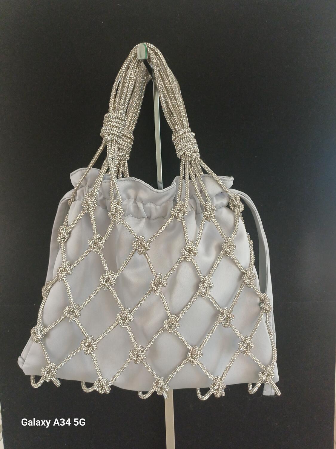 Bright Bag realizzata a macramè con luminosissimi fili di cristalli, è un accessorio elegante e raffinato che renderà unico il vostro outfit.